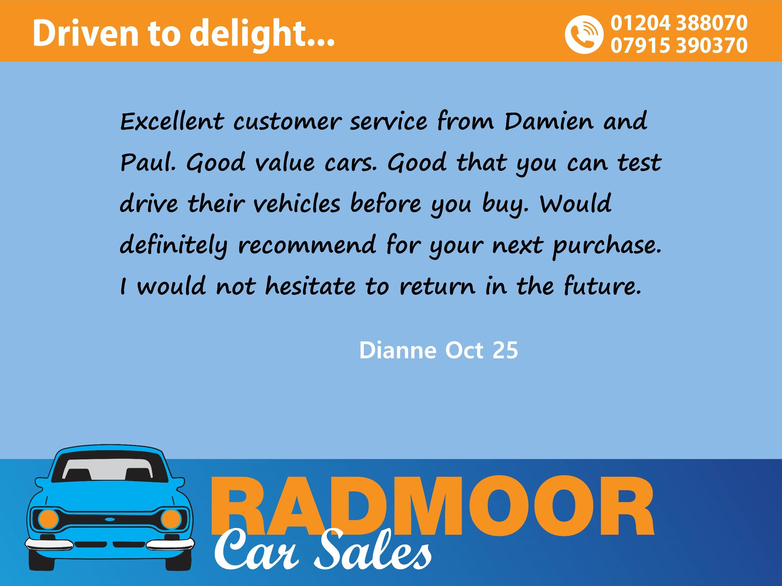 Here we have for you a wonderful little 107 with the ever so desirable automatic gearbox. This car has just 2 owners recorded on the V5, the last Christine since 2013, so it hasn't been passed from pillar to post. There are 2 keys. We have service history till 2025 and the car comes with 12 month M.O.T. from purchase along with a new up to date service. These cars are great for your pocket, just group 3 insurance, £20 road tax and are capable of over 60 M.P.G. There are also incredibly reliable. This car has just arrived and is clean but will be valeted after weekend. Radmoor Car Sales is a family business, has been trading over 45 years. Please look at our reviews on Google. Feel free to ring 01204 388070, text 07915 390370,or email [email protected] for a prompt reply( check your SPAM folder, we reply to all emails). The car you are looking at today and are thinking of buying tomorrow, is the car someone else looked at yesterday and they want to buy it today. We are on the A665 Radcliffe Moor Rd, Radcliffe, Bury opposite Bradley Fold Garden Centre. If you are using Google Maps App, just search for Radmoor Car Sales for our marker Why not have a look at our LIKE page on Facebook. Join us to see new and exciting fresh stock.