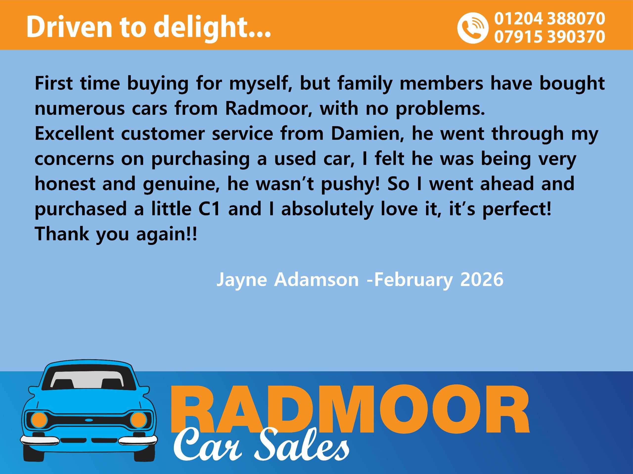 Here we have for you a wonderful little 108 with the wonderful little Toyota based engine. This little car was driven back from a trusted supplier over 200 miles away and drives exceptionally well , and the car comes with 12 month M.O.T. along with a service. There are 2 keys. On the V5 we have 3 recorded owners, the last being Abigail who owned the car since 2024, so it hasn't been passed from pillar to post. Spec wise, we have Bluetooth, DAB, USB& AUX, and those all important cupholders. Radmoor Car Sales is a family business, has been trading over 45 years. Please look at our reviews on Google. Feel free to ring 01204 388070, text 07915 390370,or email [email protected] for a prompt reply( check your SPAM folder, we reply to all emails). The car you are looking at today and are thinking of buying tomorrow, is the car someone else looked at yesterday and they want to buy it today. We are on the A665 Radcliffe Moor Rd, Radcliffe, Bury opposite Bradley Fold Garden Centre. If you are using Google Maps App, just search for Radmoor Car Sales for our marker Why not have a look at our LIKE page on Facebook. Join us to see new and exciting fresh stock.